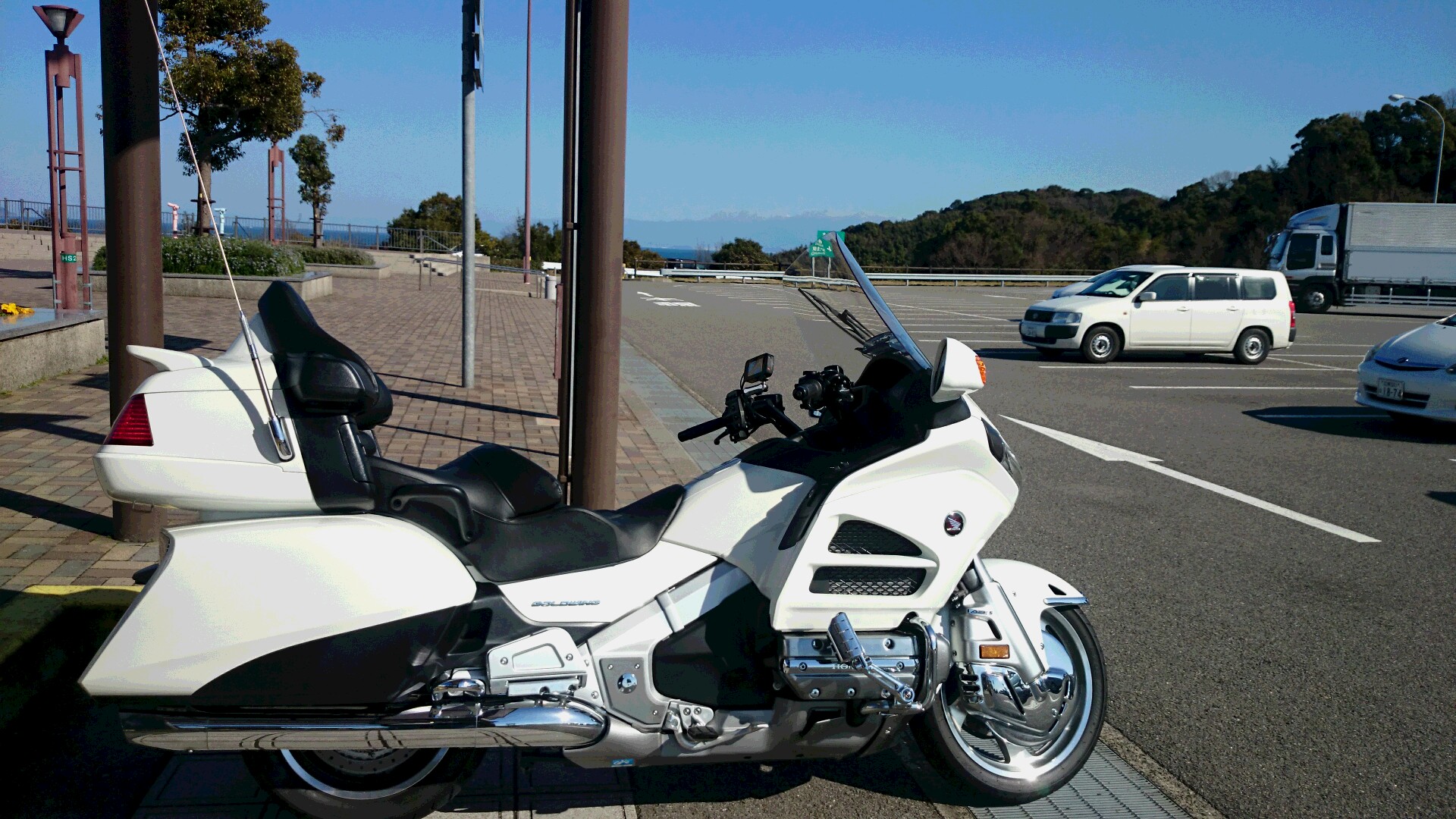 多々羅大橋の手前のパーキングで、東京から鹿児島までツーリングされるお父様がいらっしゃいました。