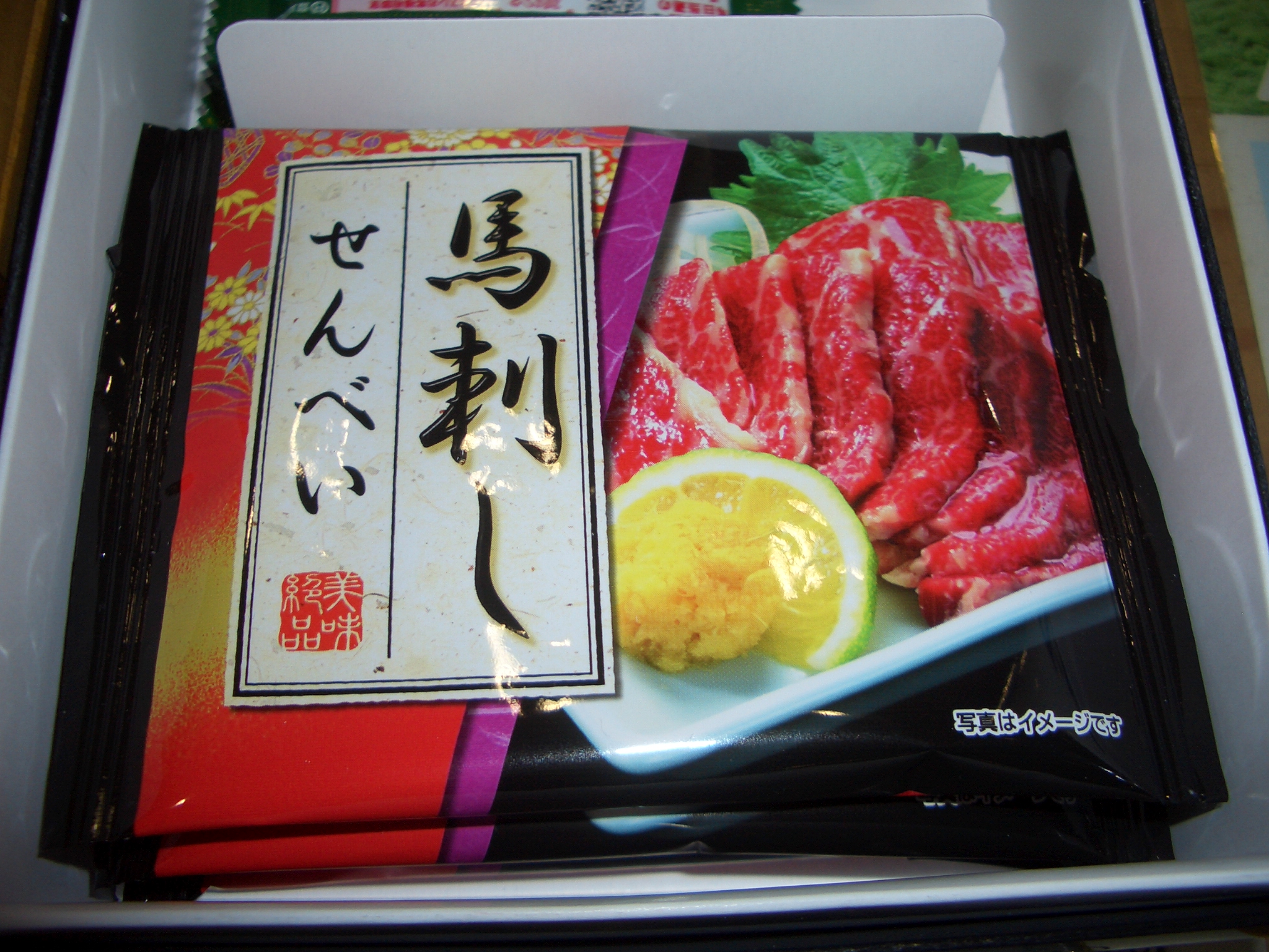 熊本土産の馬刺しせんべい。