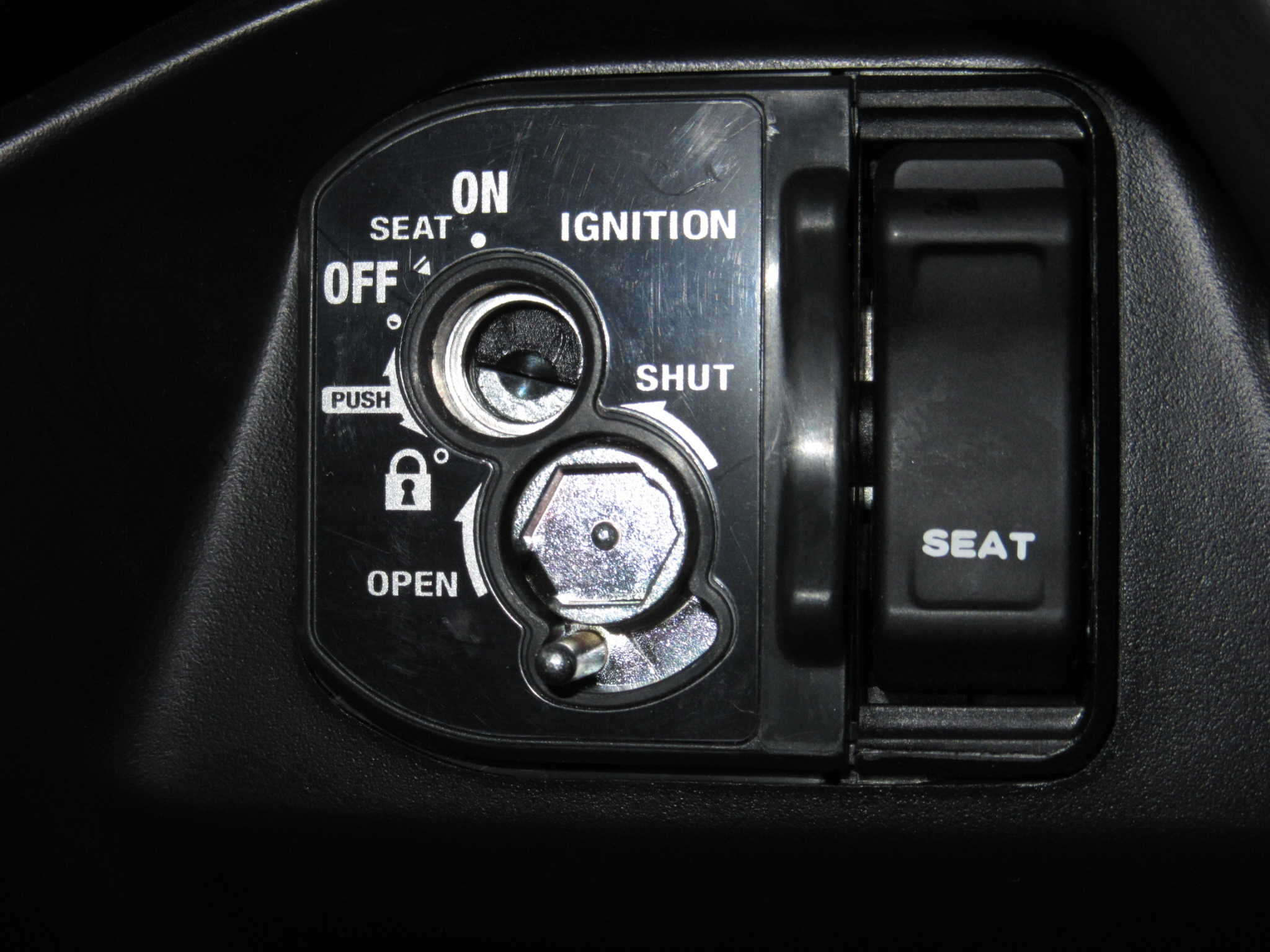 時計付メーター、明るいヘッドライト、ペットボトルは入る小物入れ、シャッターロックキー、