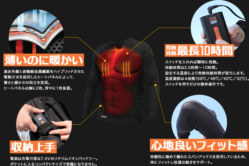 モバイルワーミングの良さとしてはアンダーウェアが電熱なのが最大の売りです。